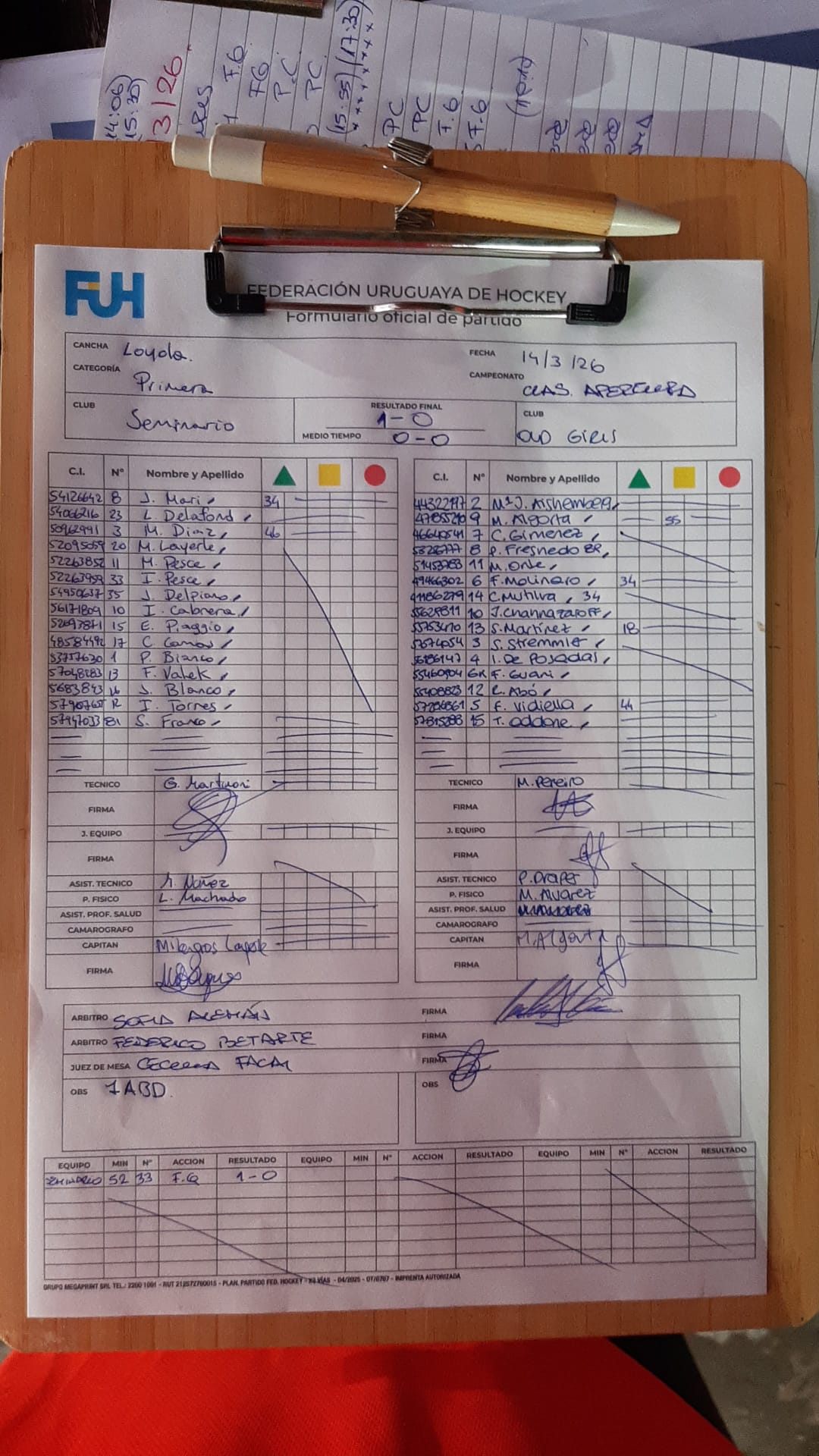 | Old Girls Primera | 1 | 0 | 0 | 1 | 0 | 1 | -1 | 0 |