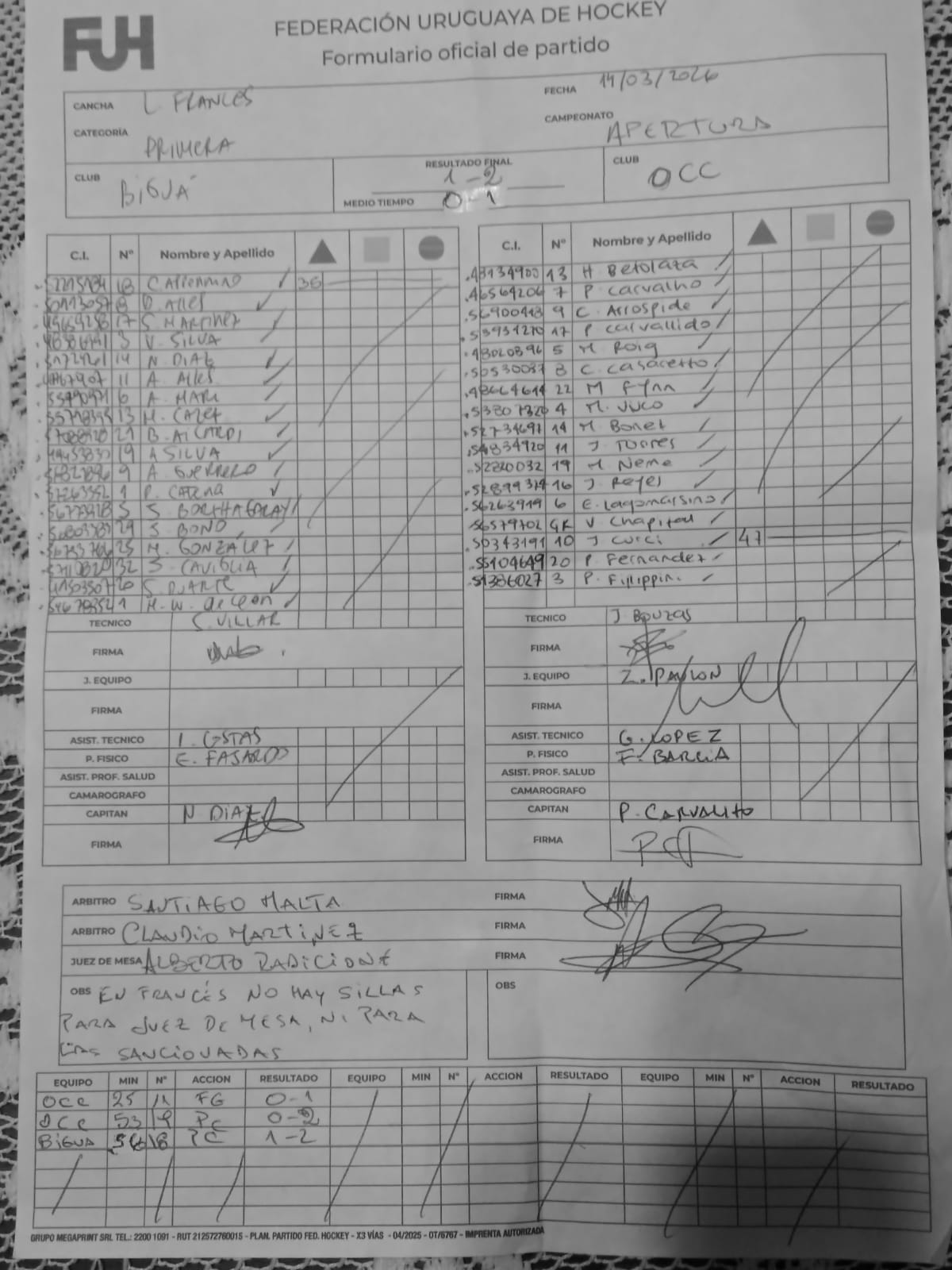 | Biguá Primera | 1 | 0 | 0 | 1 | 1 | 2 | -1 | 0 |