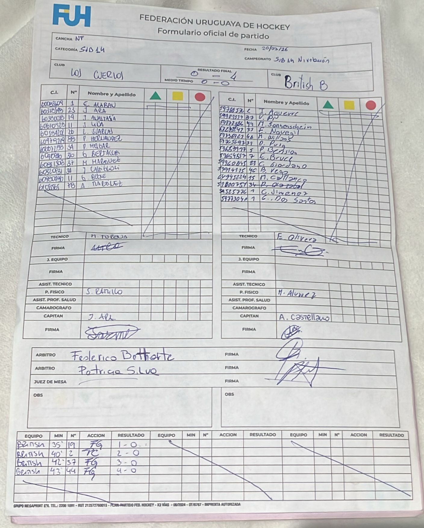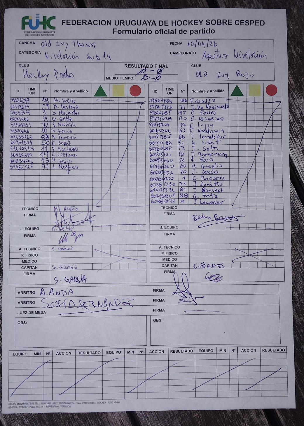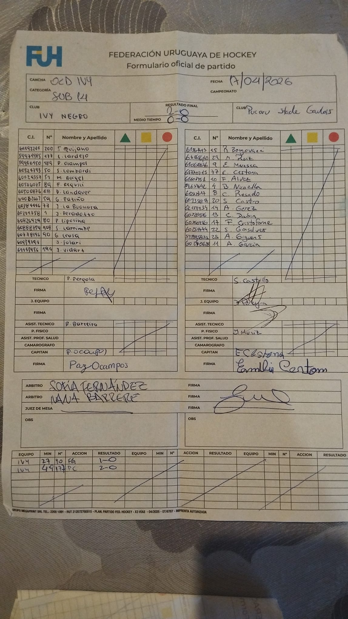 | Hockey Prado | 4 | 2 | 2 | 0 | 3 | 0 | 3 | 8 |