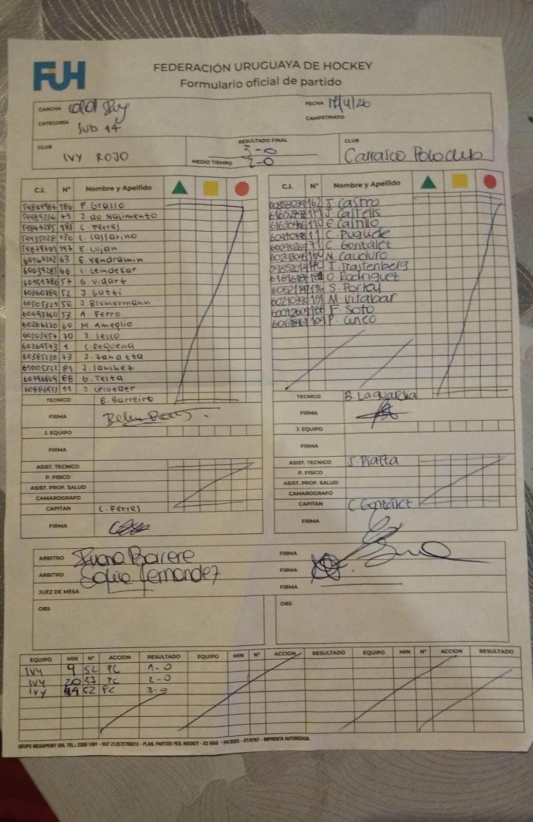 | CARRASCO POLO CLUB Sub 14 Azul | 4 | 1 | 0 | 3 | 2 | 17 | -15 | 3 |