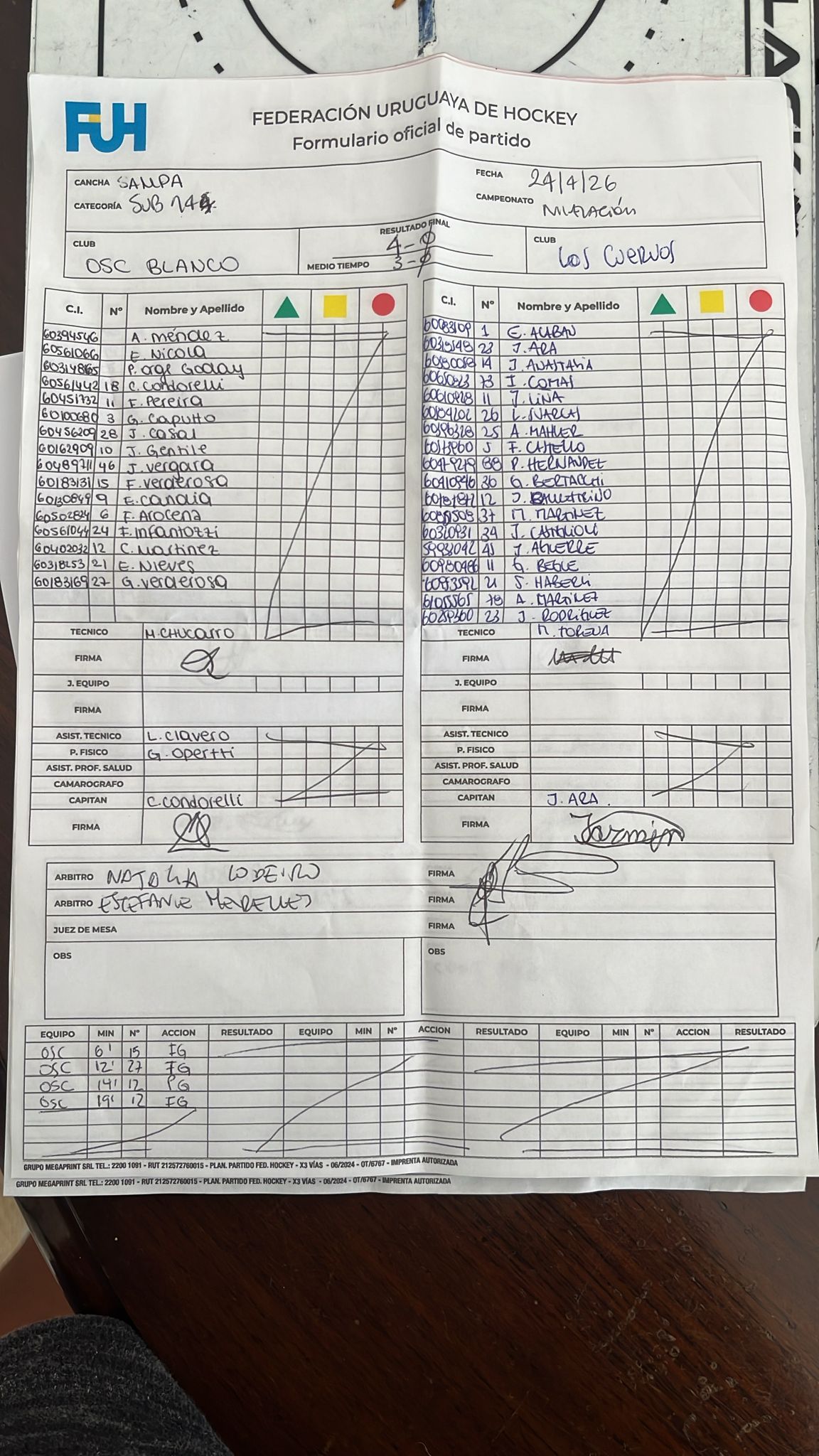 | Los Cuervos Hockey | 4 | 0 | 1 | 3 | 1 | 14 | -13 | 1 |
