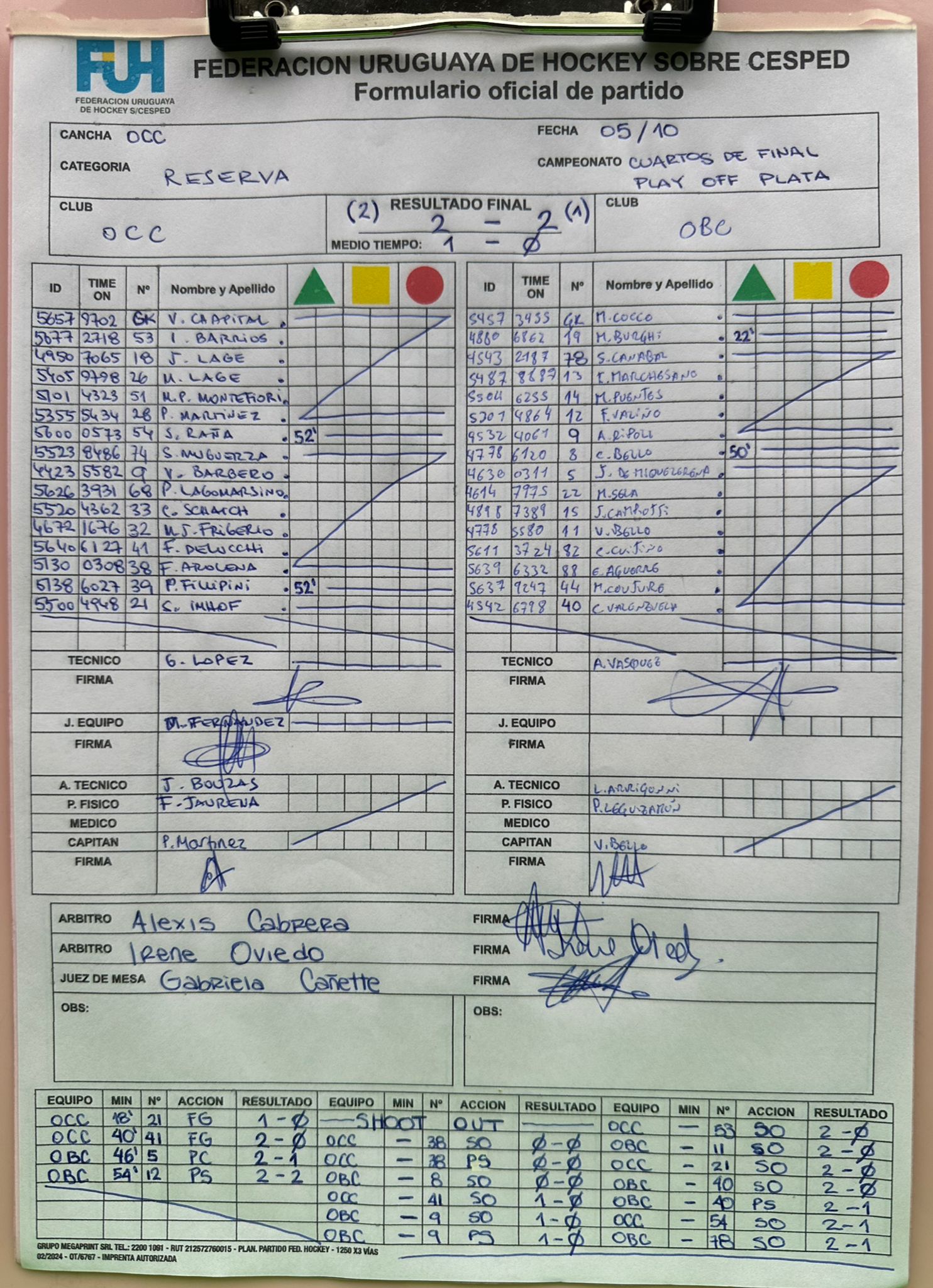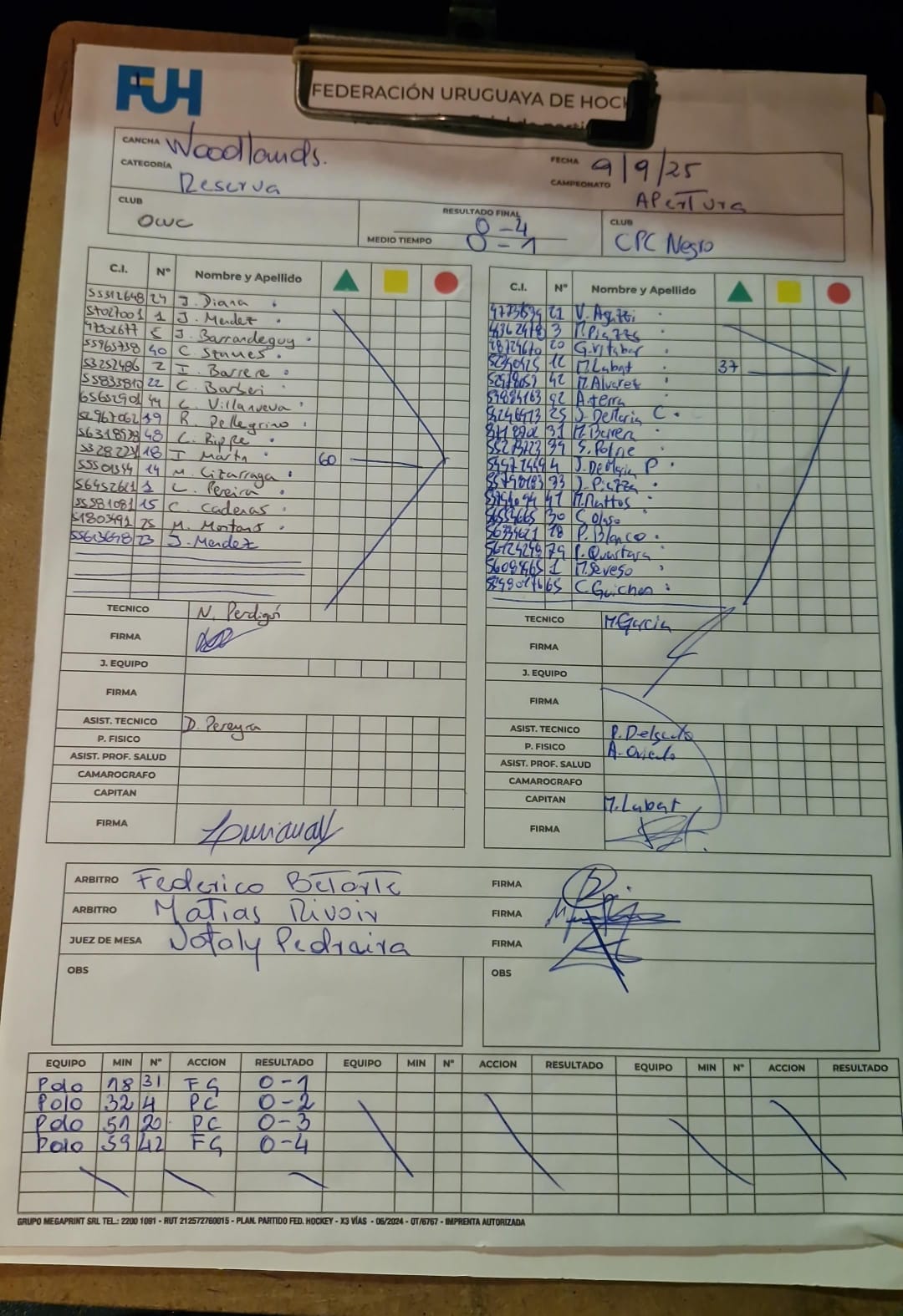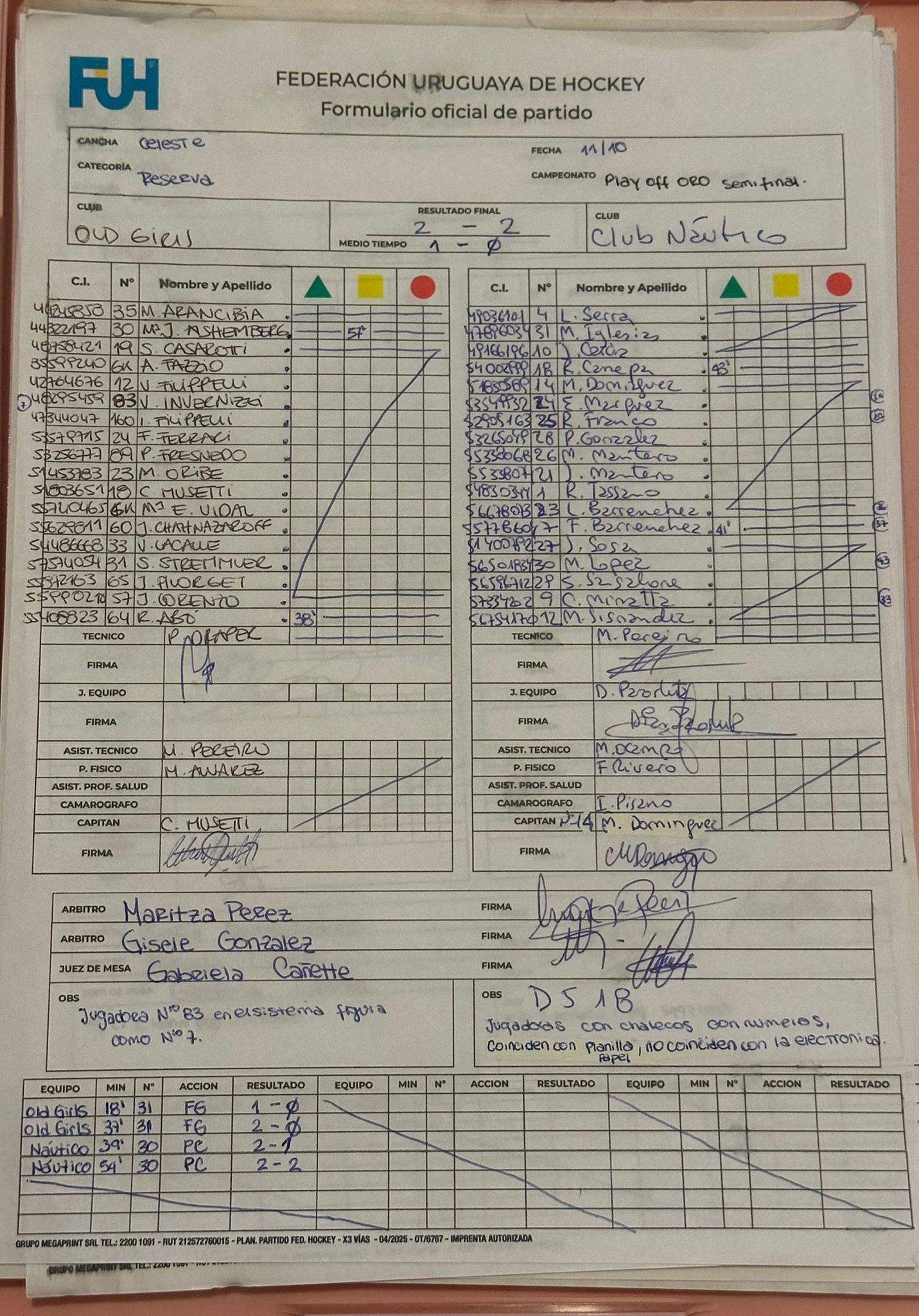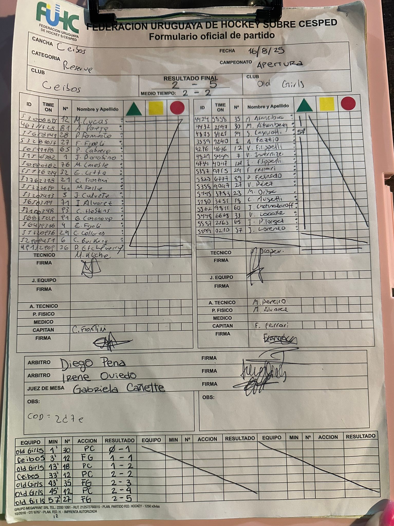 | Old Girls Reserva | 2 | 0 | 2 | 0 | 5 | 5 | 0 | 2 |
