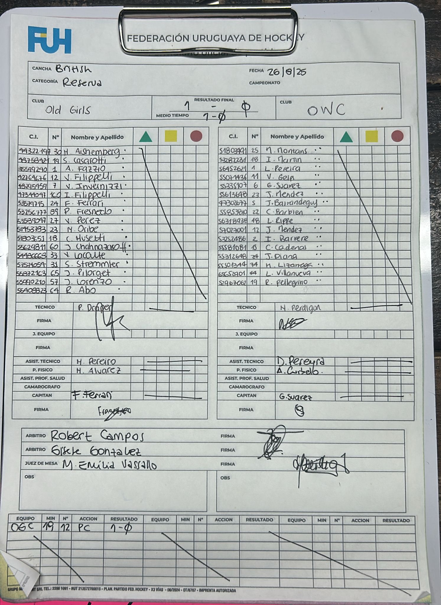 | Old Girls Reserva | 0 | 0 | 0 | 0 | 0 | 0 | 0 | 0 |
