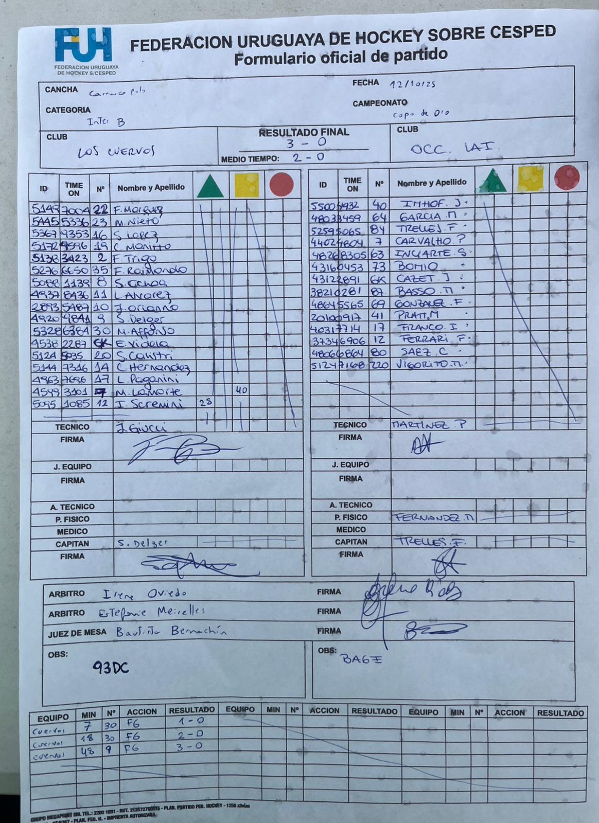 | LOS CUERVOS HOCKEY | 13 | 8 | 1 | 4 | 17 | 14 | 3 | 25 |