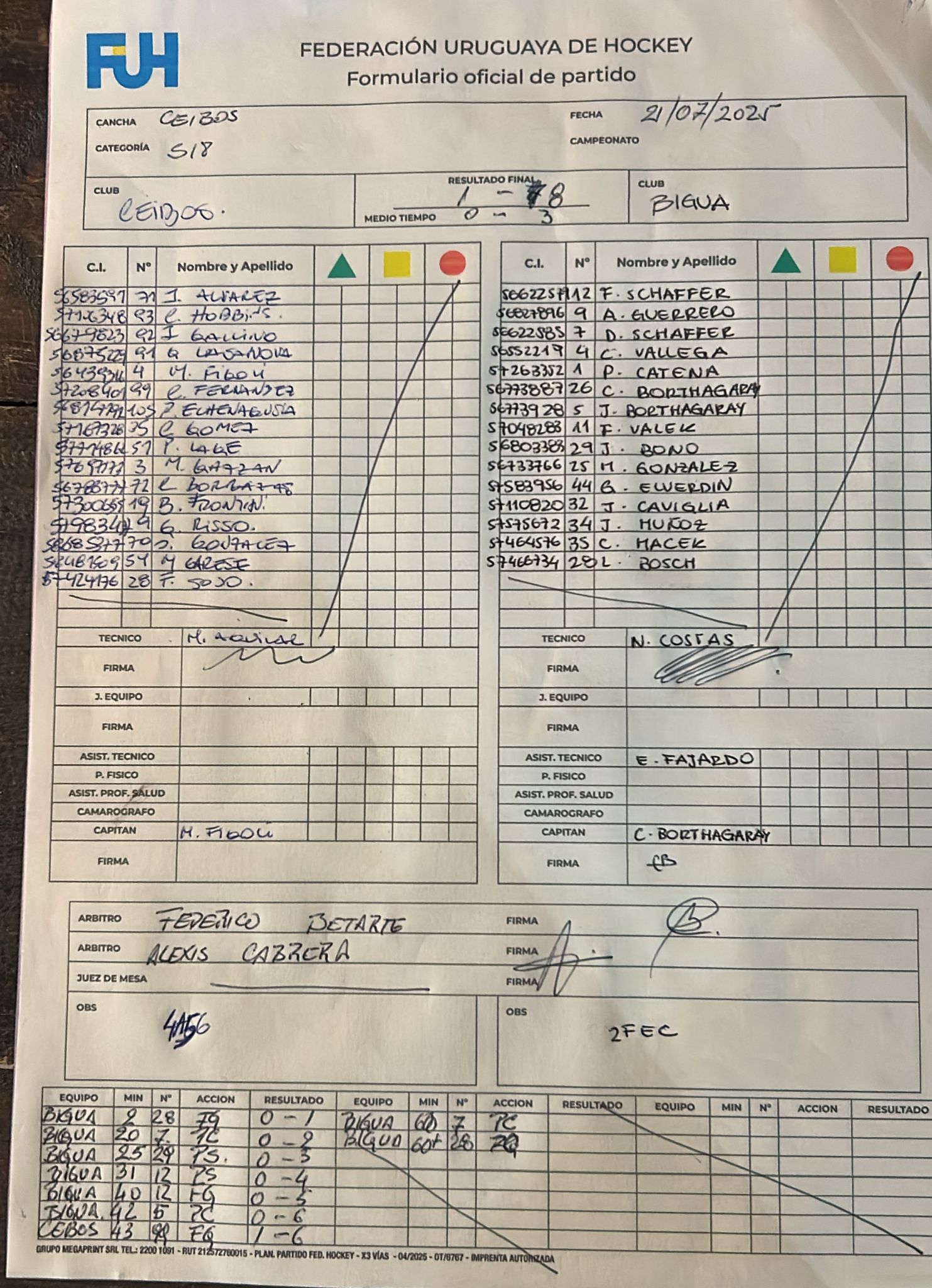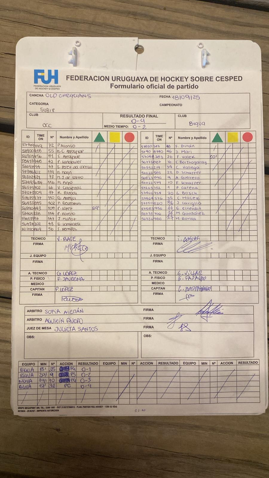 | Biguá Sub 18 | 1 | 0 | 1 | 0 | 1 | 1 | 0 | 2 |