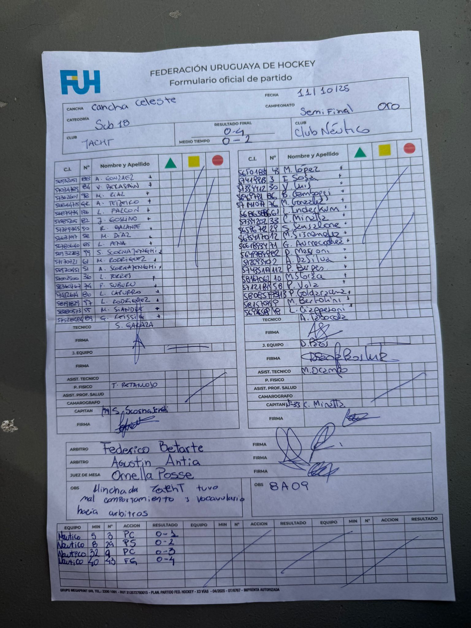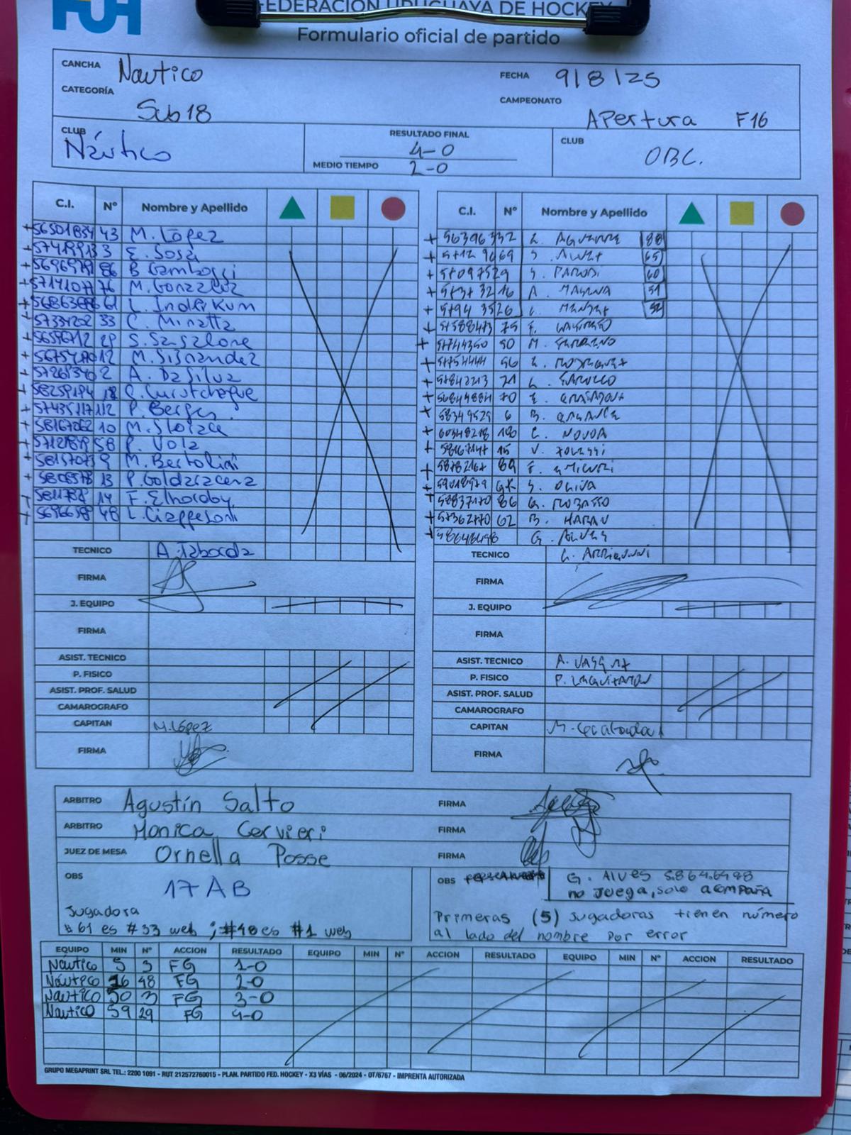 | CLUB NAUTICO SUB 18 | 0 | 0 | 0 | 0 | 0 | 0 | 0 | 0 |