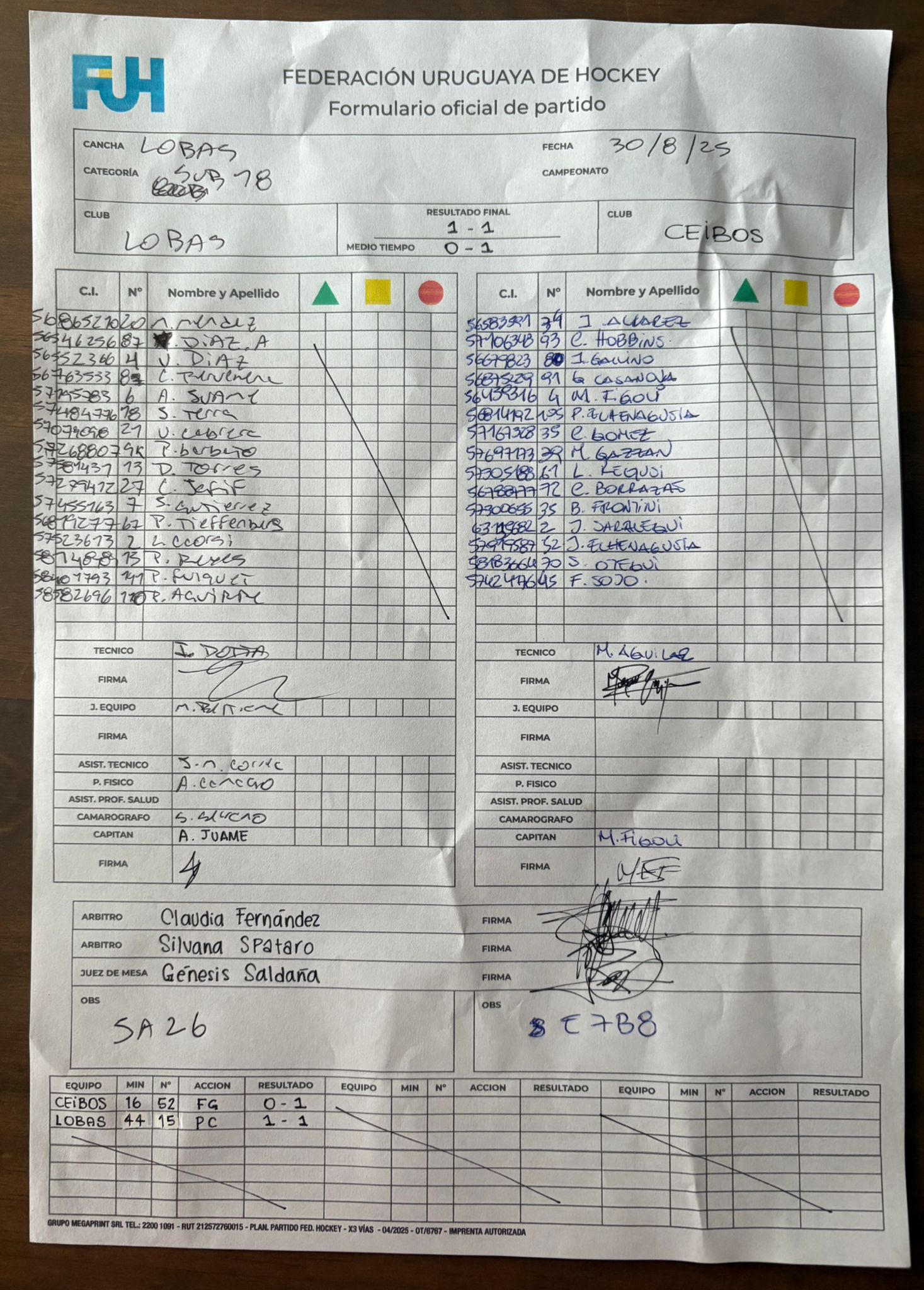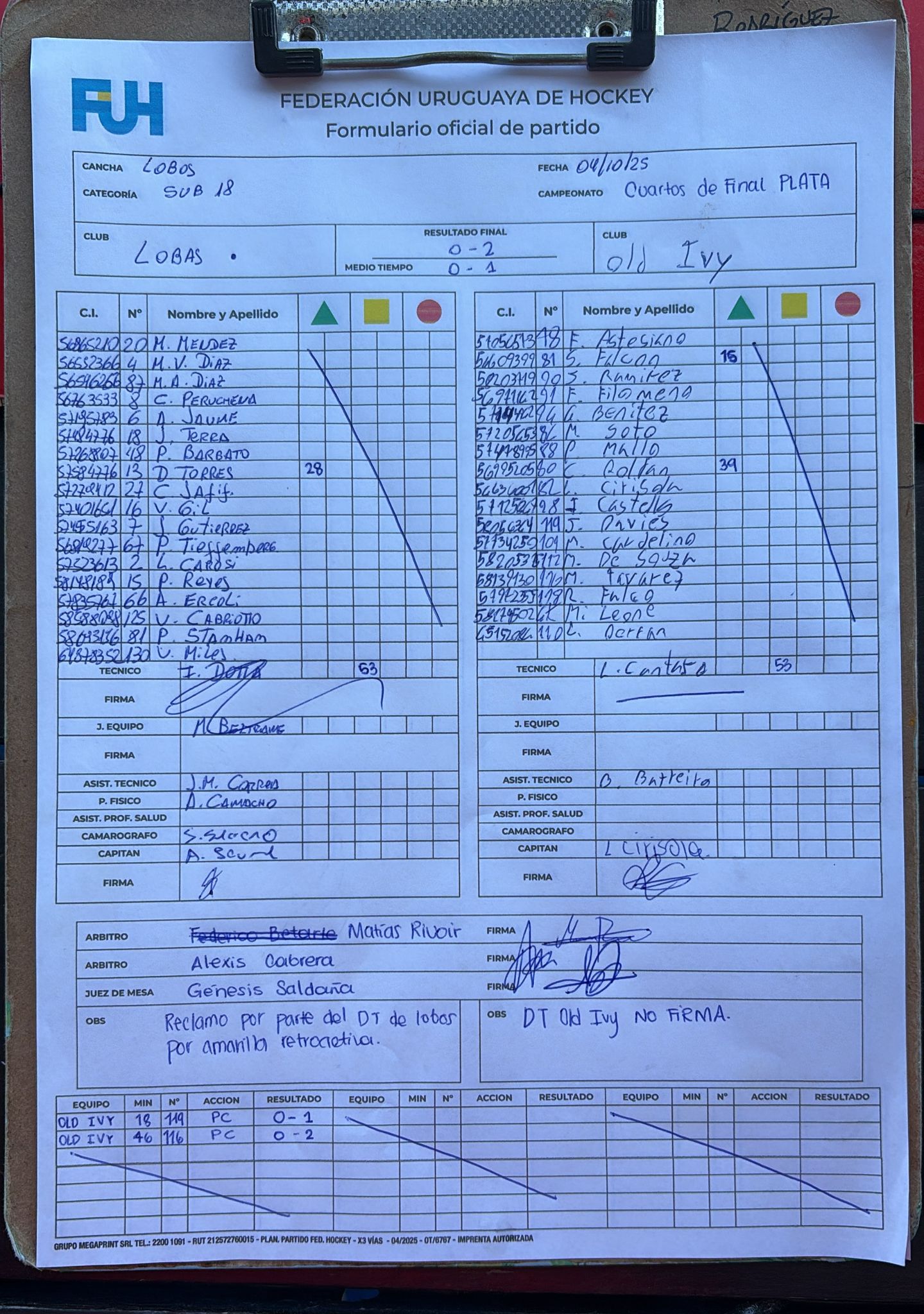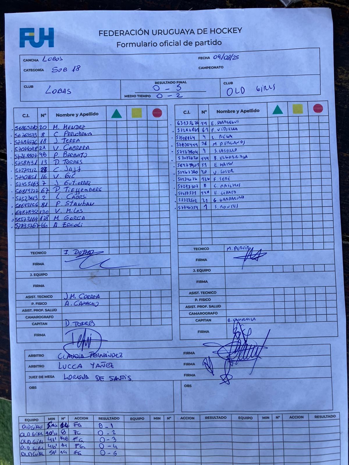 | Lobas | 2 | 0 | 0 | 2 | 1 | 5 | -4 | 0 |