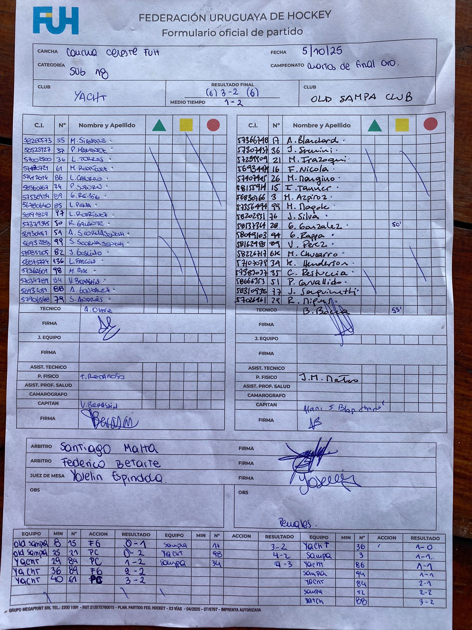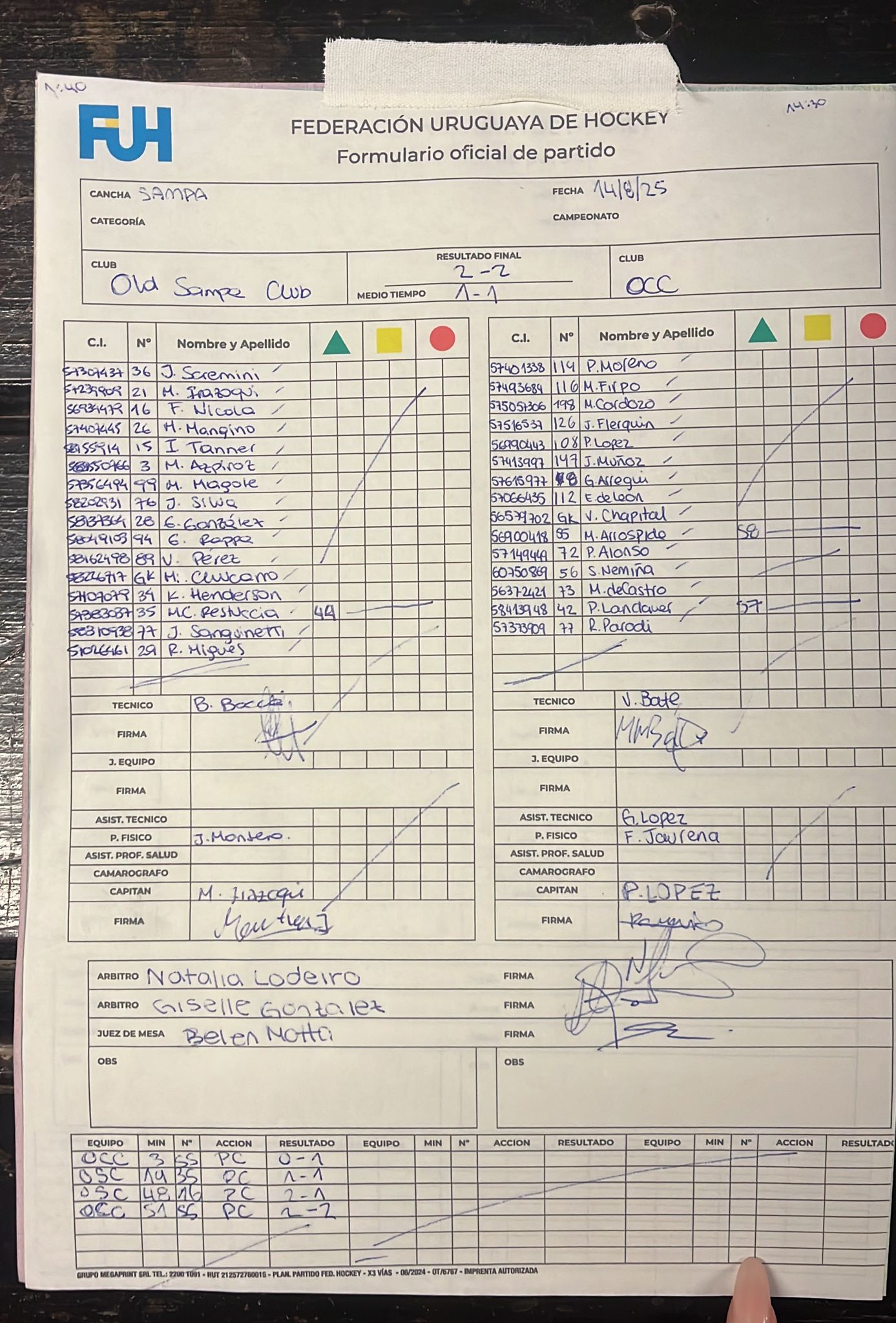 | Old Sampa Club | 2 | 1 | 0 | 1 | 6 | 6 | 0 | 3 |