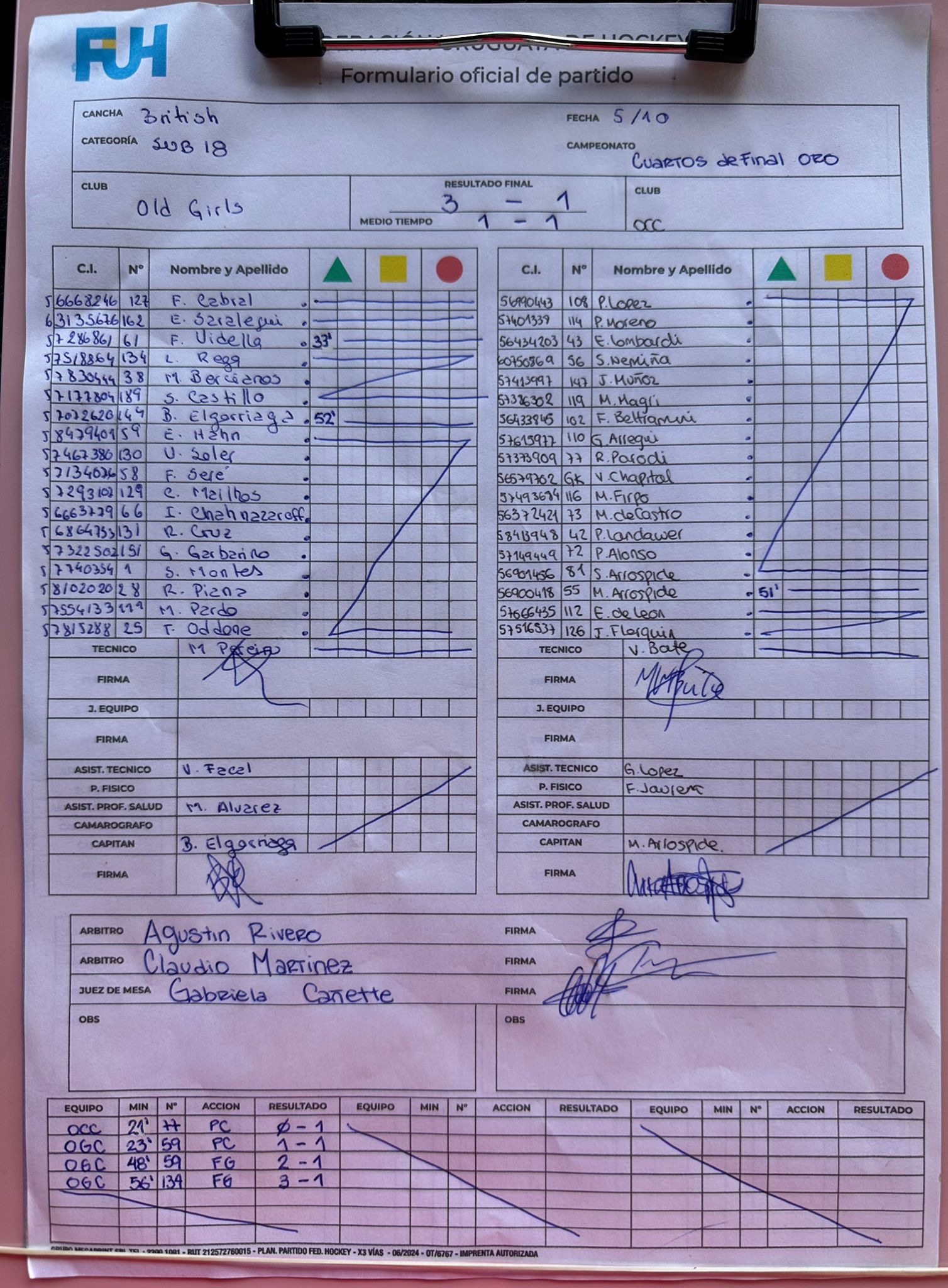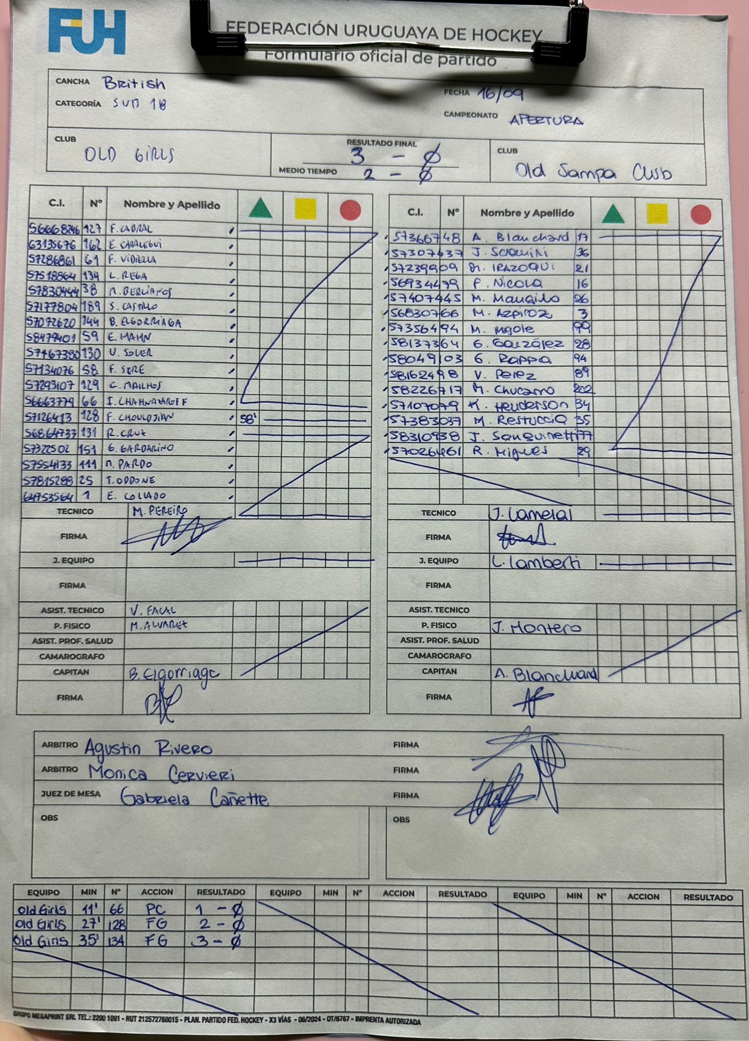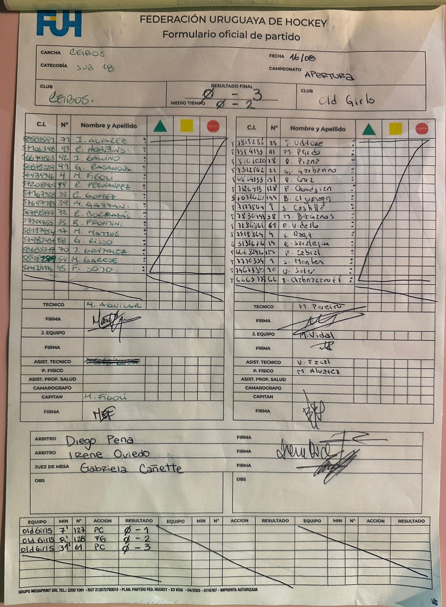 | Old Girls Sub18 | 1 | 1 | 0 | 0 | 3 | 2 | 1 | 3 |