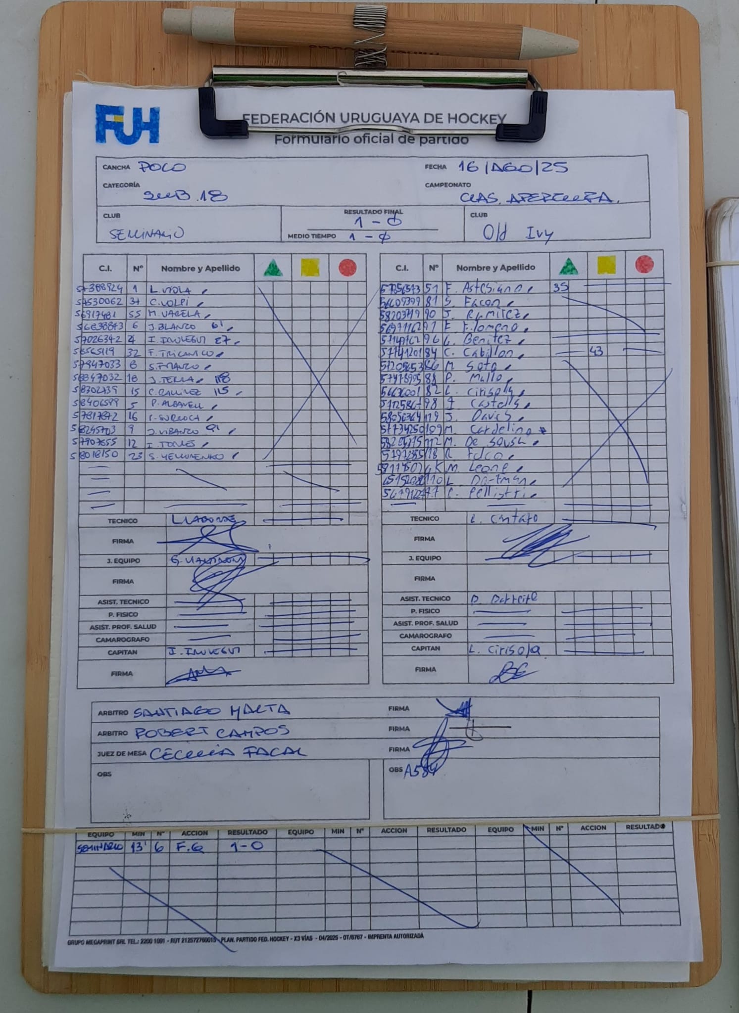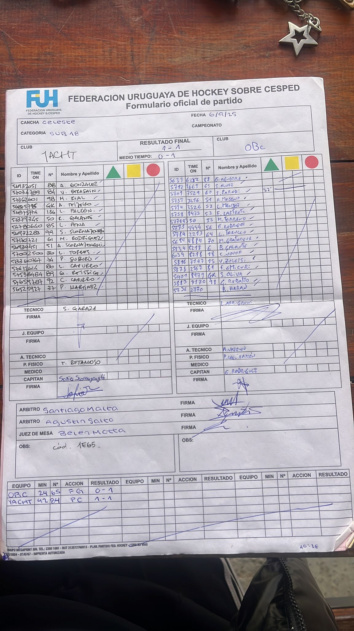 | CLUB NAUTICO SUB 18 | 1 | 0 | 0 | 1 | 0 | 1 | -1 | 0 |