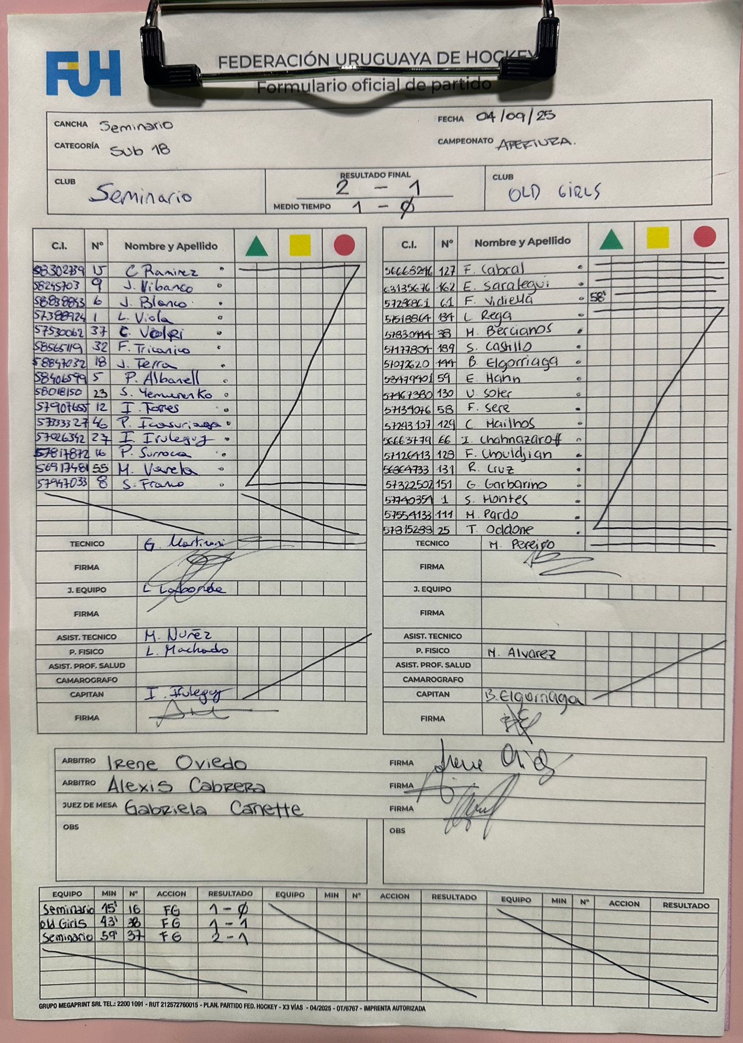 | Colegio Seminario | 2 | 1 | 0 | 1 | 3 | 3 | 0 | 3 |