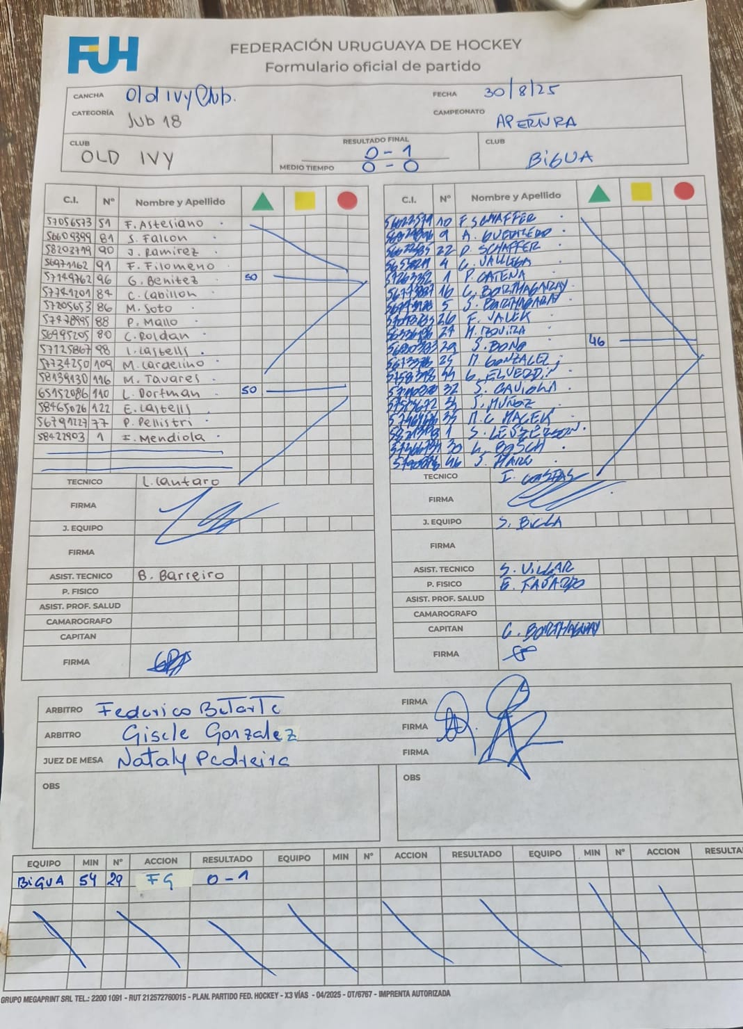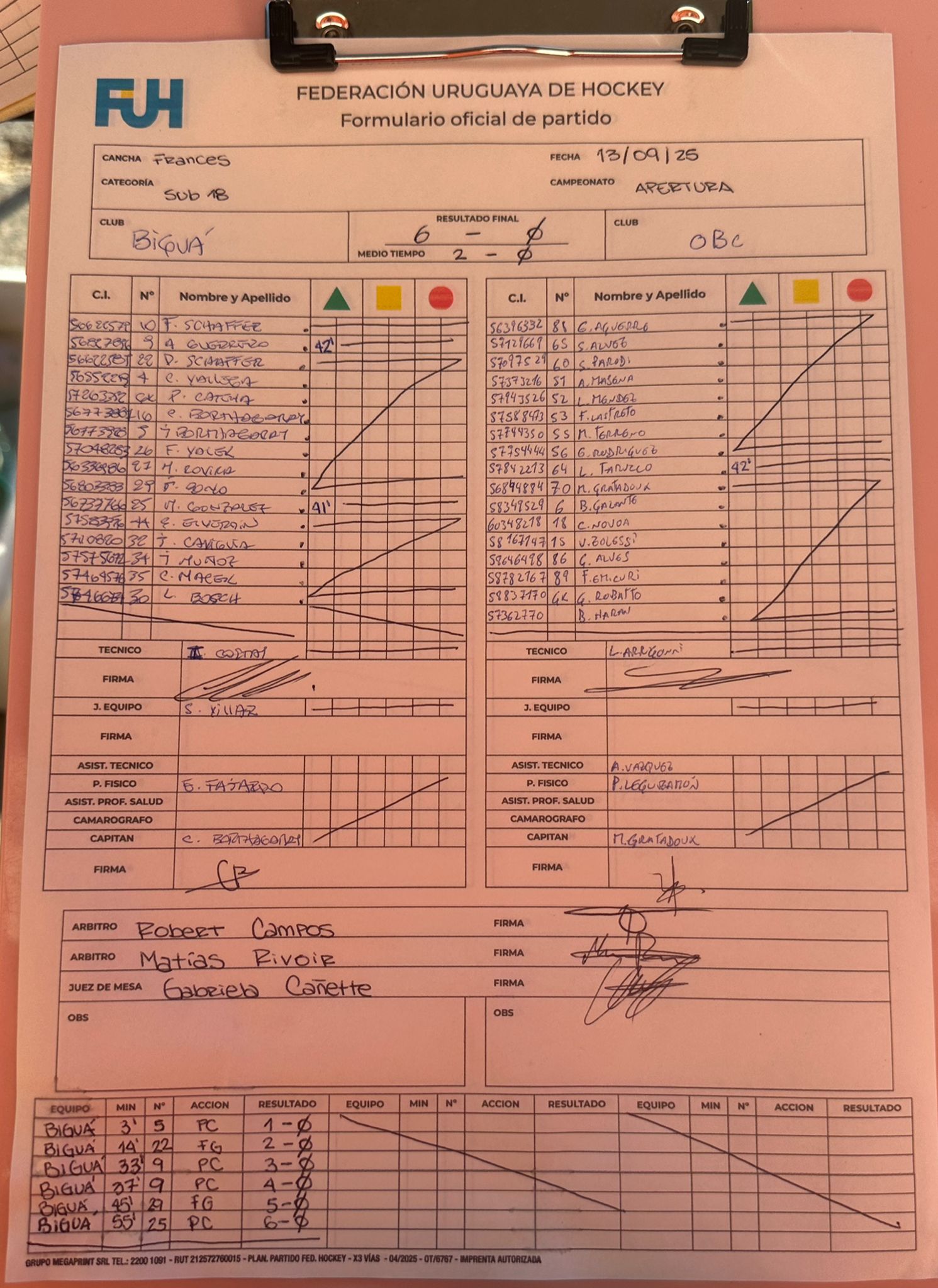 | Biguá Sub 18 | 0 | 0 | 0 | 0 | 0 | 0 | 0 | 0 |