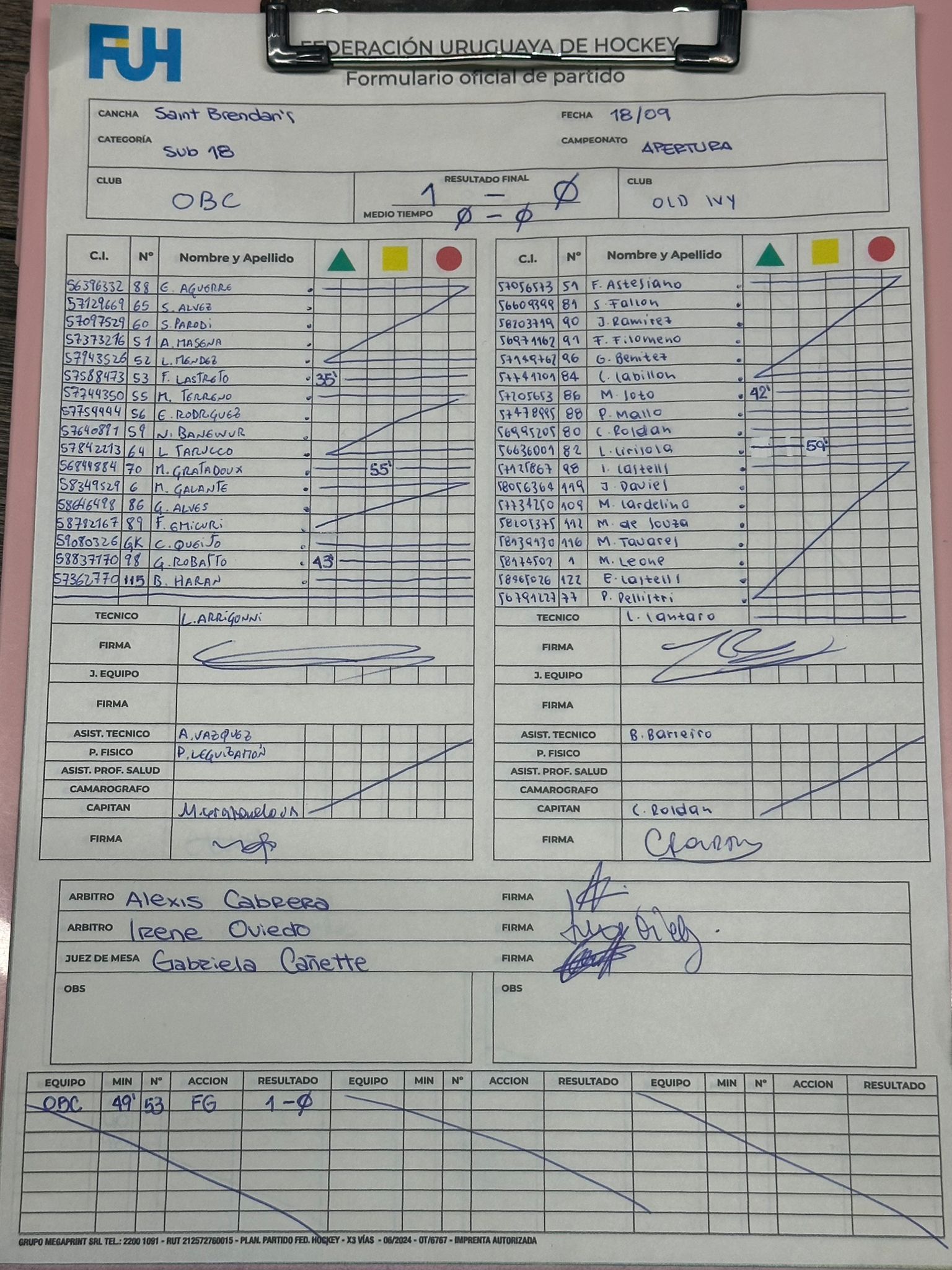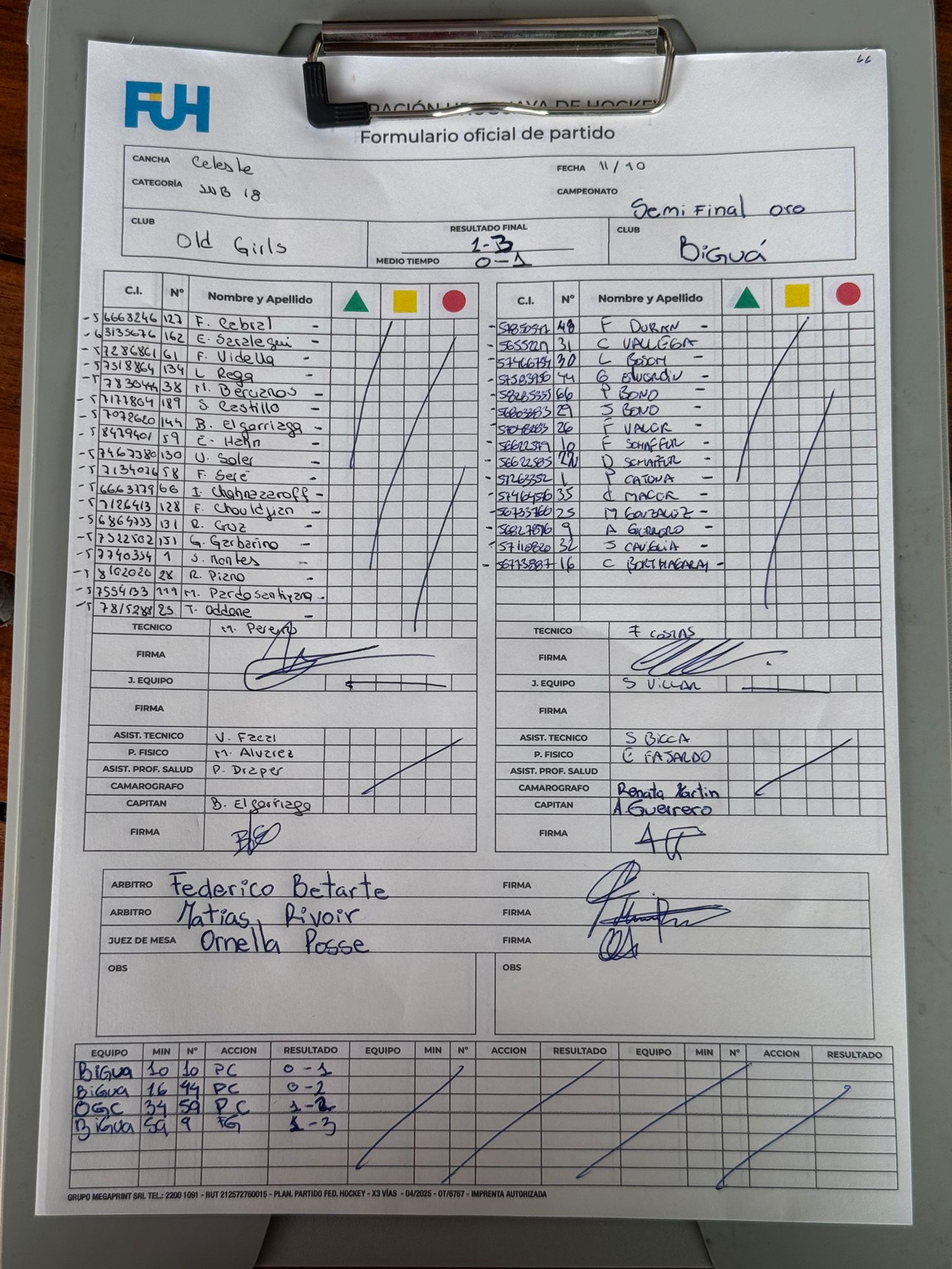 | Biguá Sub 18 | 1 | 1 | 0 | 0 | 1 | 0 | 1 | 3 |
